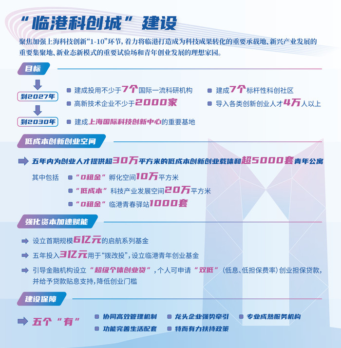 近期,临港新片区宣布正式启动“临港科创城”建设,出台《上海市“临港科创城”建设方案》,推出科创社区建设、创业启航基金等“一揽子”创新举措,通过整合政府资源与市场力量,合力构建“成本更低、生态更优、陪伴更暖、成功率更高”的国际一流科创城。