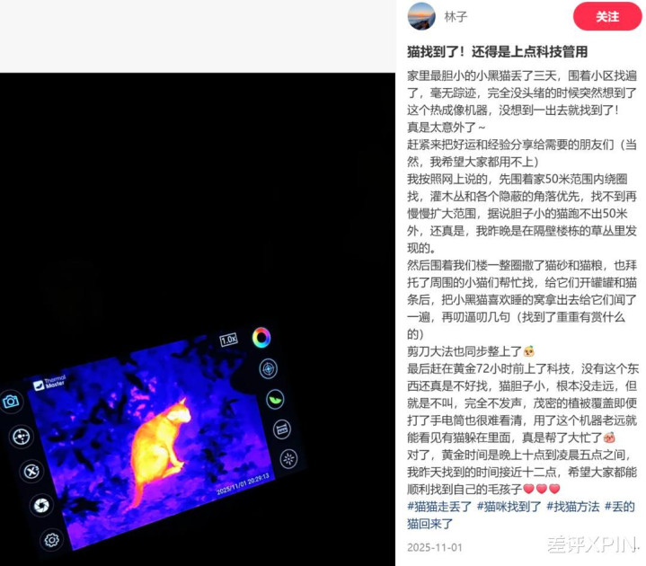 所以问题来了:这玩意能找猫吗?一个 “会拍温度” 的功能,凭啥能值三千多?这玩意到底是不是智商税?