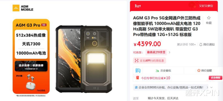 跟它同配置的安卓机,可能也就一千来块;但这台手机因为内置了一个红外热成像模块之后,价格直接干到了 4399 元。