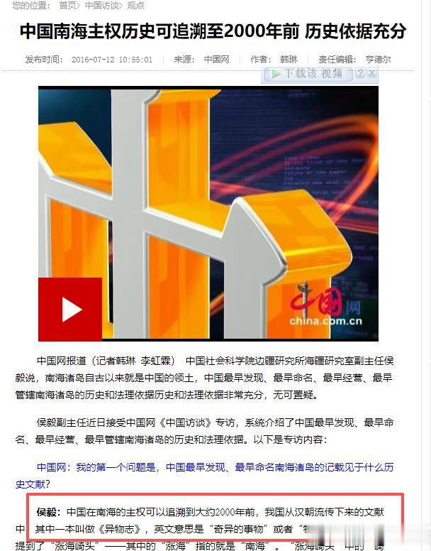 同理,南海自古以来就是中国不可分割的固有领土,这一点有铁证支撑。2000年前的东汉,杨孚《异物志》中就有“涨海崎头,水浅而多磁石”的记载,“涨海”是古代对南海的称呼,“崎头”则指南海的岛、礁、滩、沙洲。