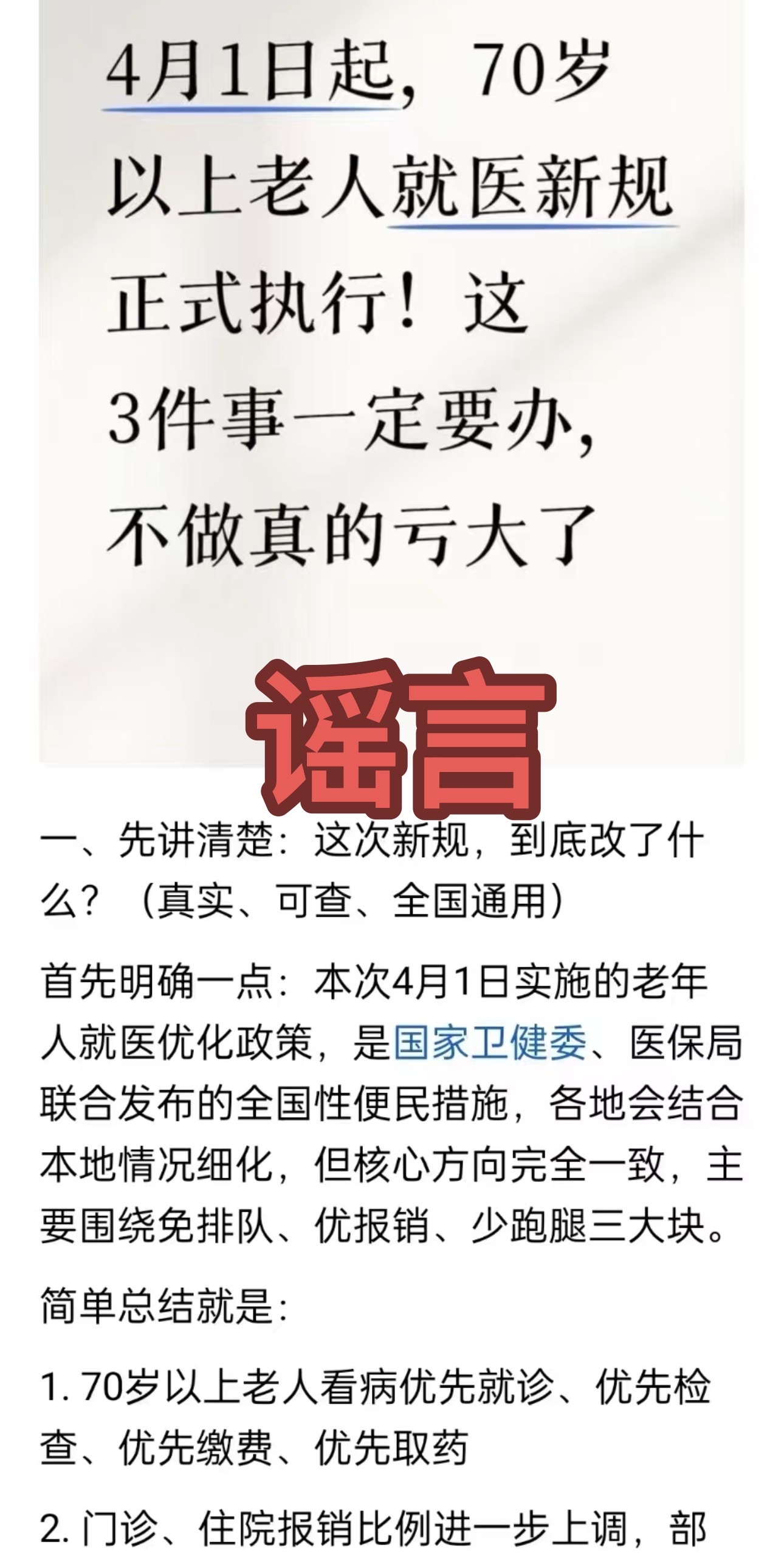 nba下注app 网传4月起老东谈主就医新规落地?假的!
