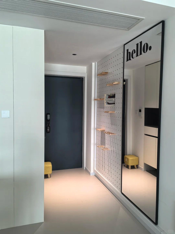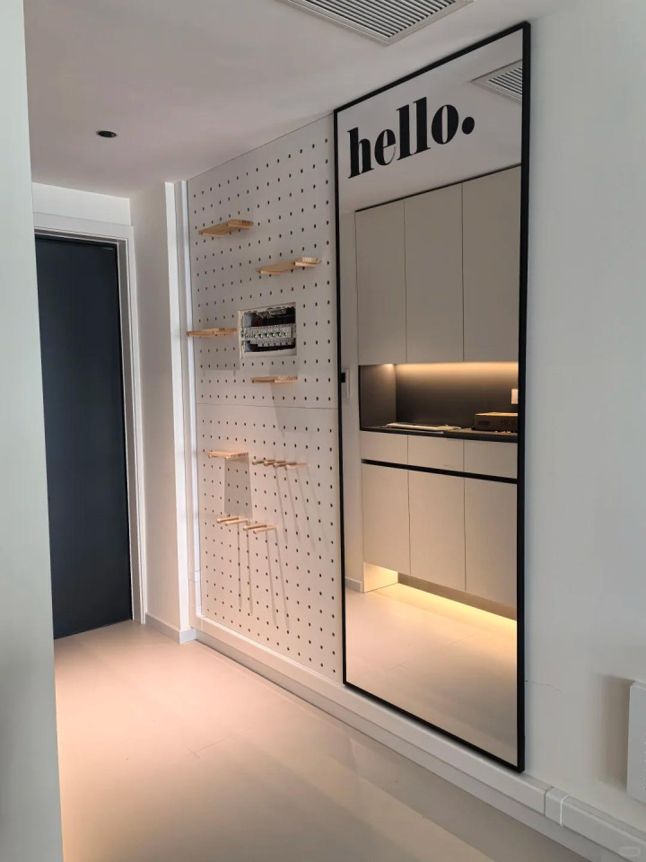 洞洞板加镜子,一个收东西,一个让场所显大,互不影响,还配得好。况兼全都不挡步辇儿的场所。