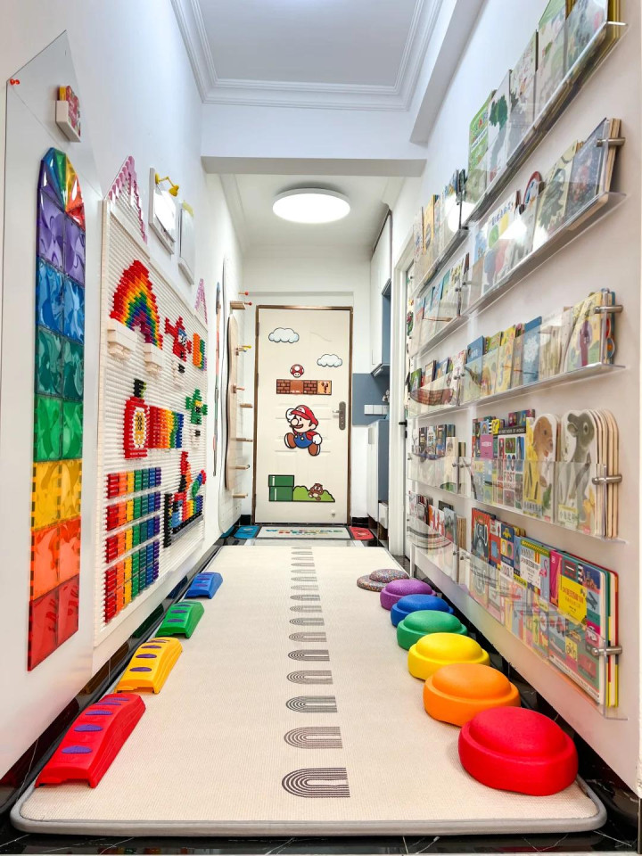 屋主家里有两个大东说念主和一个小孩。他们以为走廊空着太浮滥,就把双方墙都用上了,给孩子作念了一个小乐土。