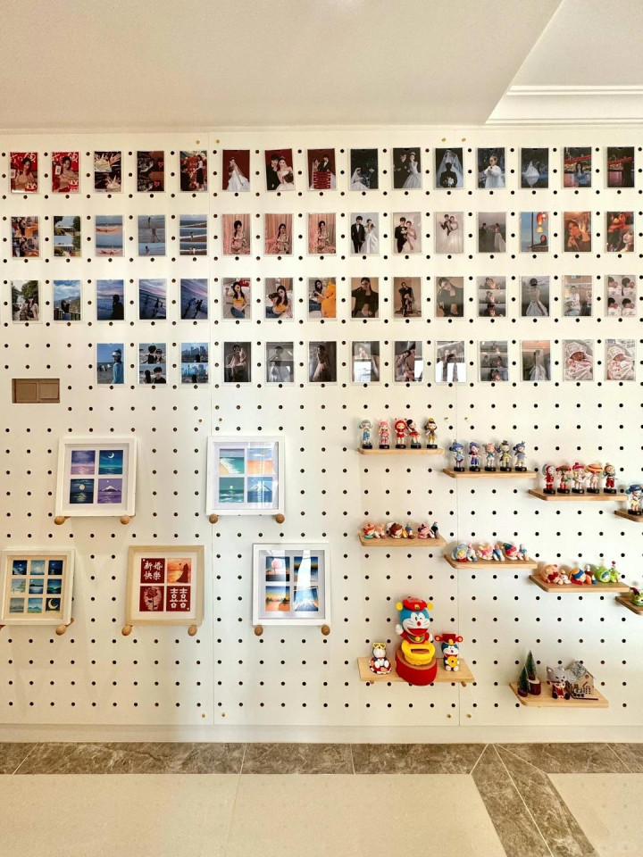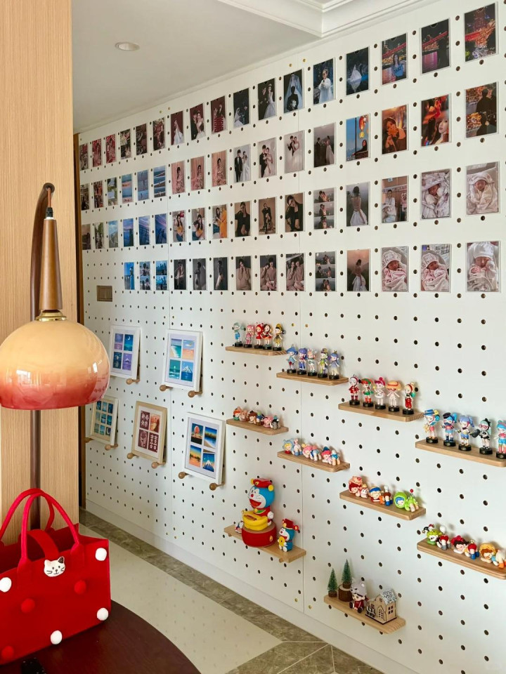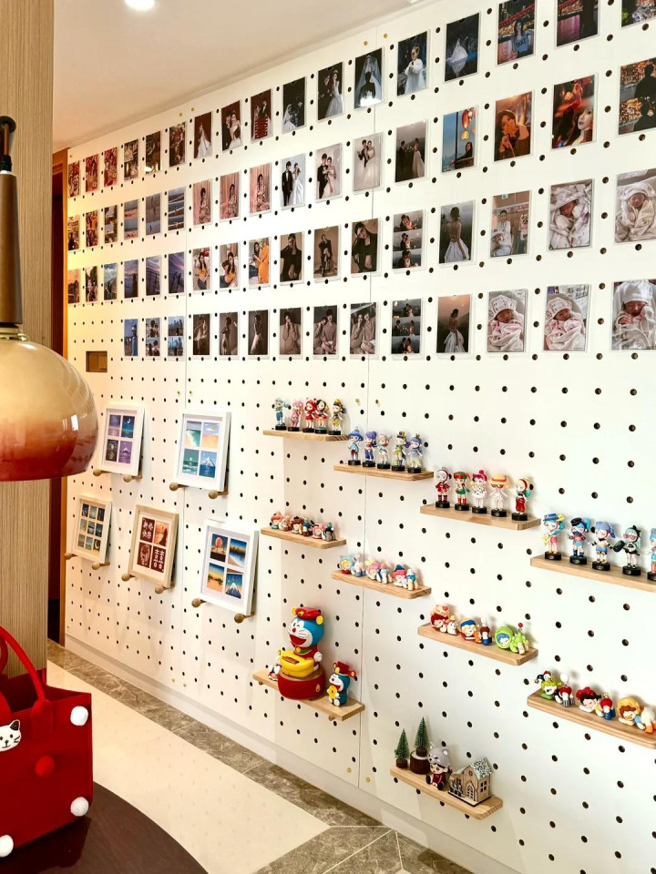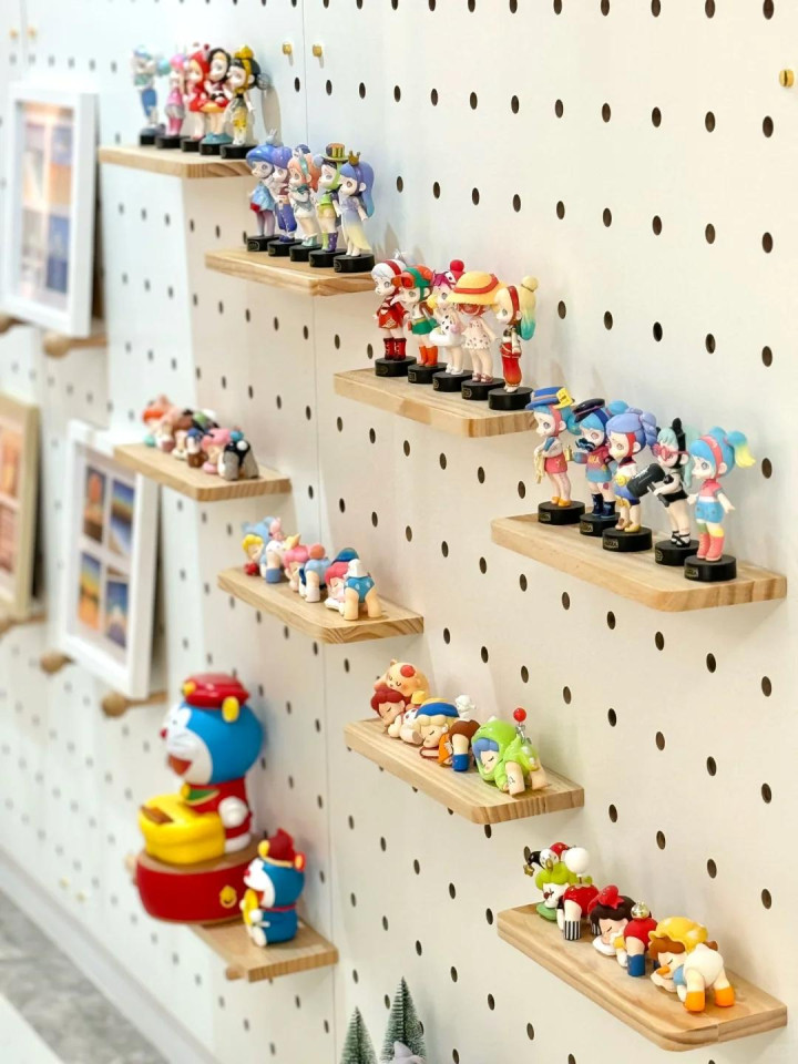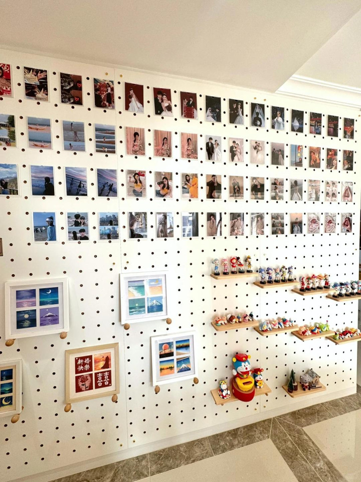 洞洞板的公正是粗率换。哪天想换一批相片,或然盲盒出了新的想摆出来,随时调就行,无须从头打孔。