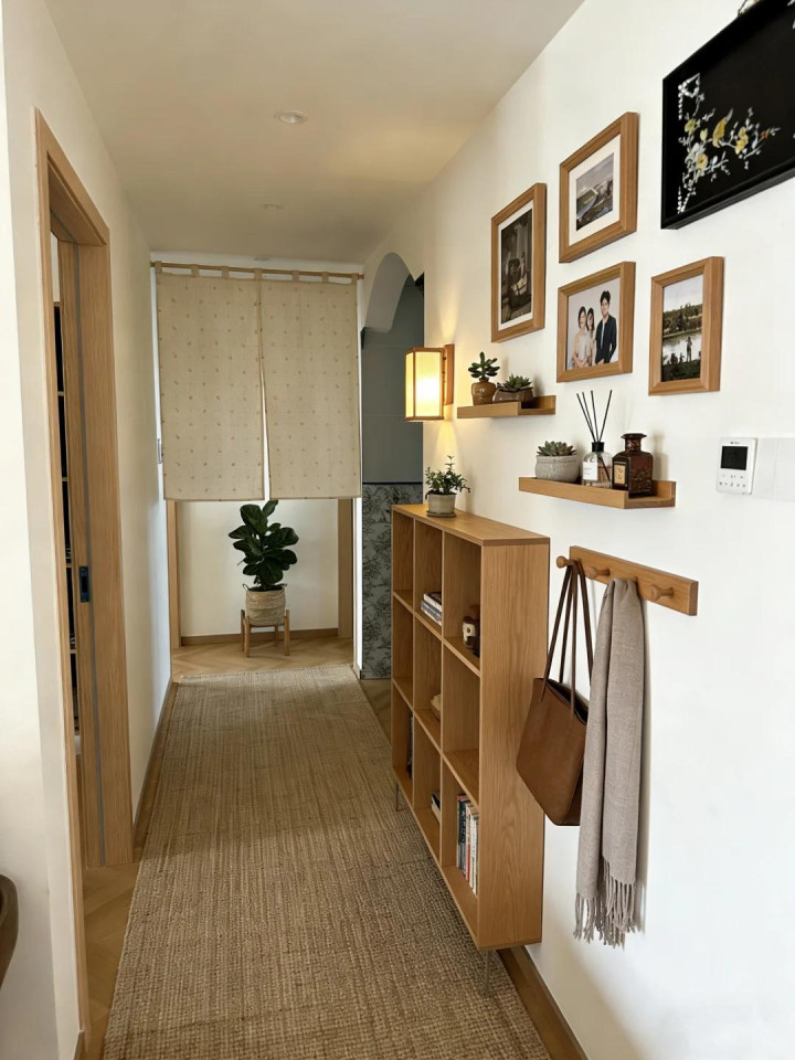 好多东说念主家里进门过说念又窄又长,不弄点啥显得憋得慌,弄了又怕挡路。这个例子给了一个好观念。
