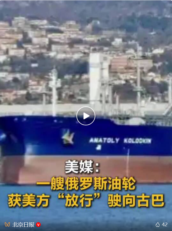 此前据@CCTV海外时讯,3月31日,nba下注app载有10万吨东说念主说念意见石油的俄罗斯油轮“阿纳托利·科洛德金”号抵达古巴马坦萨斯湾。这是古巴遭好意思国新一轮石油闭塞以来的首批迫切石油寄托。古巴动力部长在应对媒体发文暗意感谢。