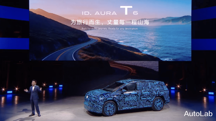 活动现场,一汽-民众还文书了ID.AURA系列首款车型的定名——ID.AURA T6。