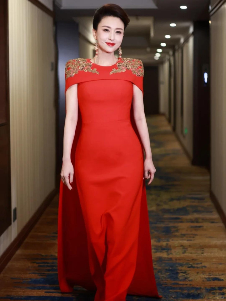 肩部的贪图很有看点,是那种披肩式的小大氅,从肩膀处蔓延出来,垂在体格两侧,不是紧贴体格的那种,是有点宽松的版型,步辇儿的期间会随着步地轻轻浪荡,加多了少量超逸感。大氅的角落和肩部,有大面积的金色刺绣荫庇,是那种很邃密的龙凤纹样,不是疏漏的线条,是有档次的立体刺绣,金线在光芒下闪得很亮眼,跟红色的裙身酿成了强横的对比,一下子就把贵气感拉满了。