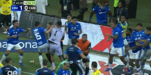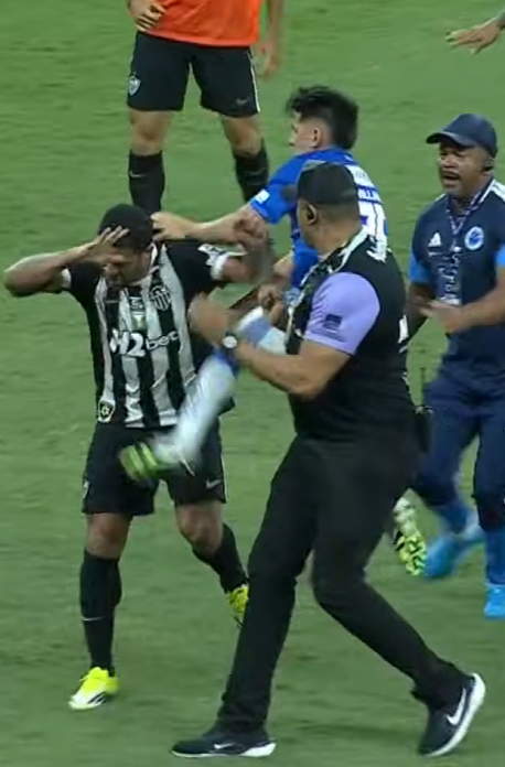 之后两队其他球员也加入战局,克鲁塞罗门将卡西奥、热尔松也与米内罗后卫莱扬科热烈互殴。之后,效用于米内罗竞技的胡尔克也卷入膺惩。