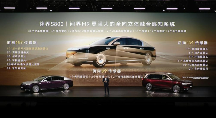 当今尊界S800和问界M9全车具备36个传感器,包含4个激光雷达、3个散布式4D毫米波雷达、2个4D毫米波雷达、11个录像头、12个超声波雷达和4个车外麦克风,不错对车辆周围环境兑现精确的识别。