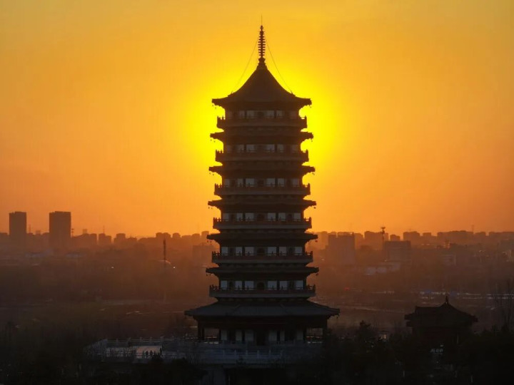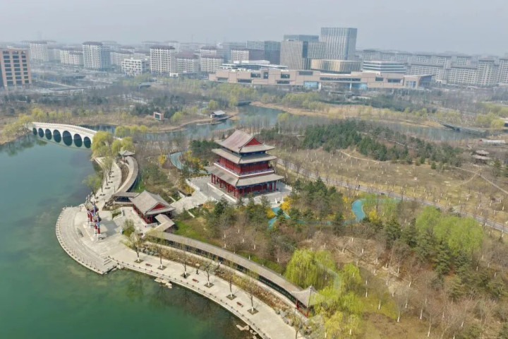 ↑ 这是雄安新区悦容公园安和塔(3月18日摄,无东说念主机相片)。新华社记者 朱旭东 摄