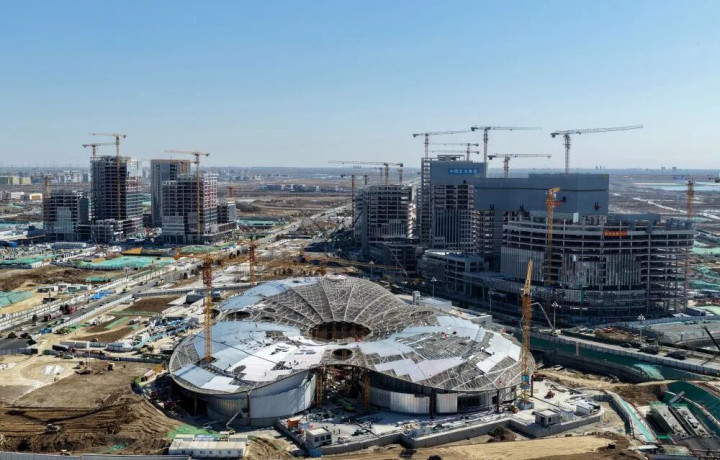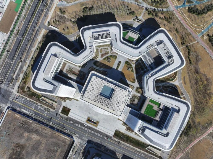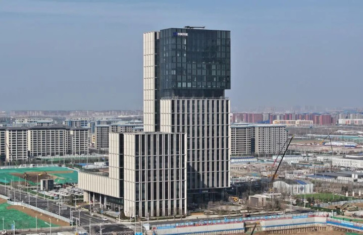 ↑ 雄安新区驱动区的中国星网总部(3月18日摄,无东说念主机相片)。新华社记者 朱旭东 摄