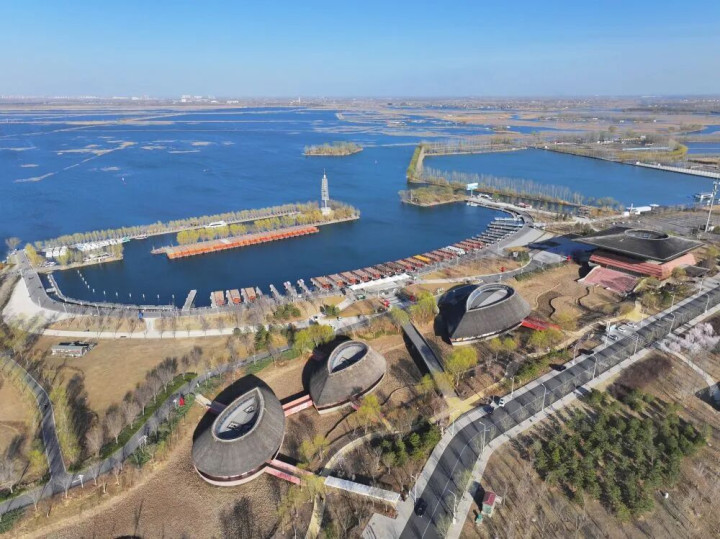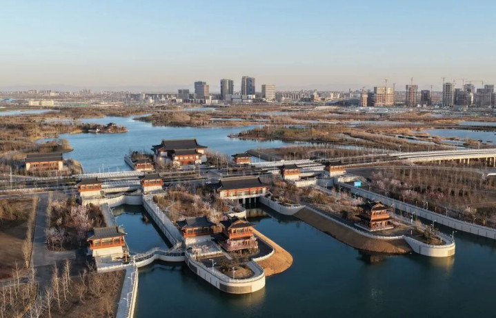 ↑ 雄安新区南河关节蓬勃(3月18日摄,无东说念主机相片)。新华社记者 杨世尧 摄