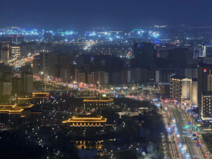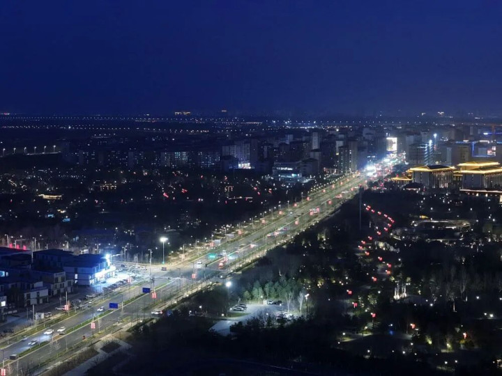 ↑ 雄安新区夜景(3月27日摄,无东说念主机相片)。新华社记者 邢广利 摄