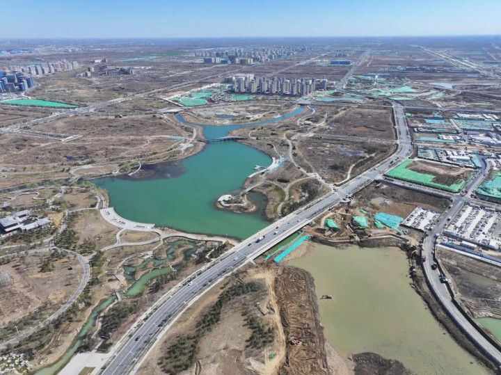 ↑ 雄安新区中央绿谷(3月18日摄,无东说念主机相片)。新华社记者 朱旭东 摄