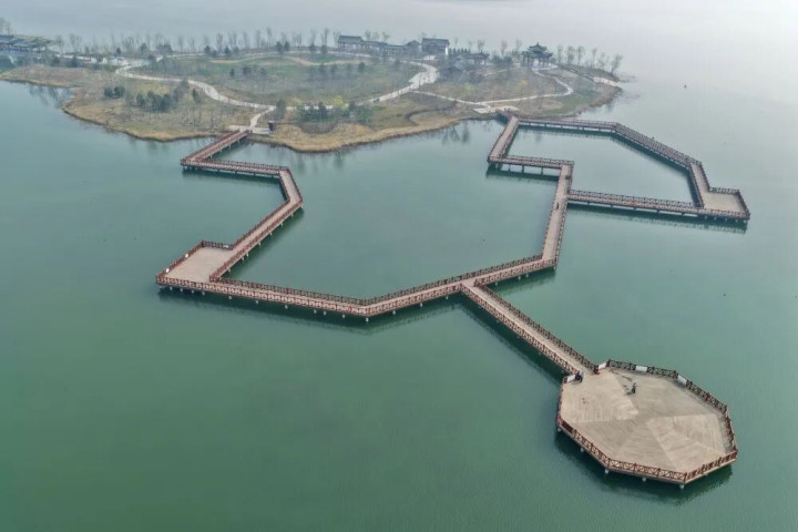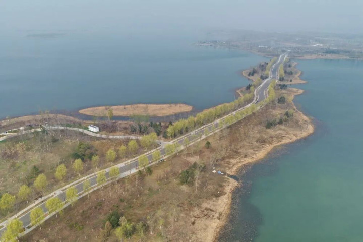 ↑ 这是雄安新区白洋淀燕南堤(3月26日摄,无东说念主机相片)。新华社记者 牟宇 摄