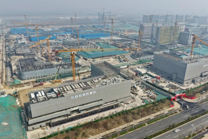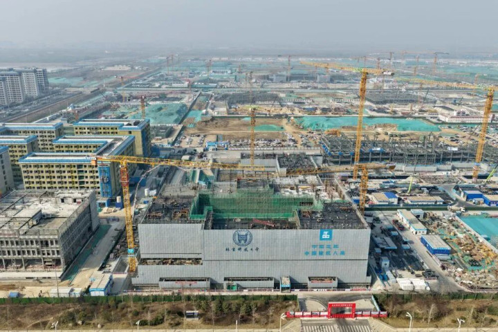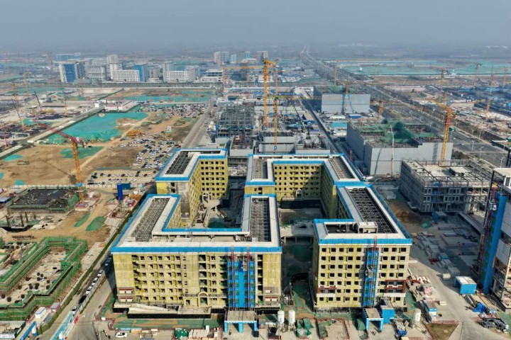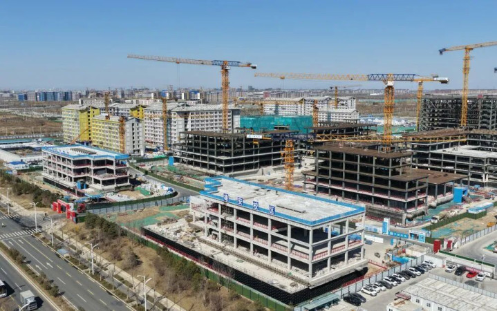 ↑ 中国地质大学(北京)雄安校区建造现场(3月26日摄,无东说念主机相片)。新华社记者 牟宇 摄