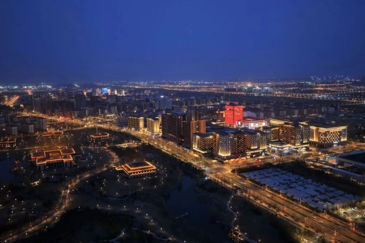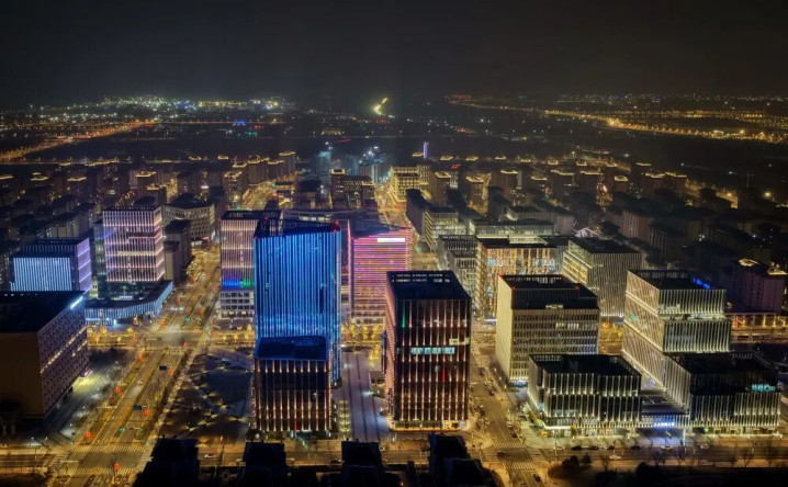 ↑ 雄安新区商务管事中心片区夜景(3月16日摄,无东说念主机相片)。新华社记者 杨世尧 摄