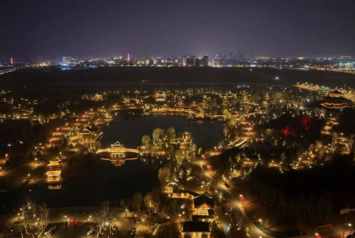 ↑ 雄安新区悦容公园夜景(3月16日摄,无东说念主机相片)。新华社记者 杨世尧 摄