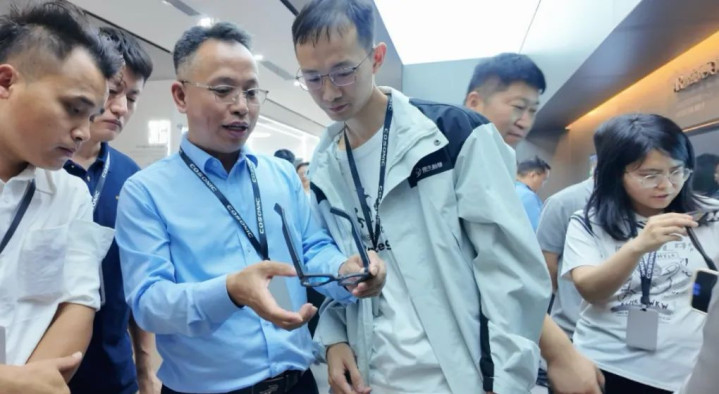 4月1日,由潮电智库组织发起的“AI眼镜中国行”抓续奔突,累积涵盖新材料、光波导、主控与存储芯片、走漏手艺、决策集成、自动化装备等全产业链路的近百家精英企业,畅通走进了东莞科技改进高地松山湖科学城和智能衣服ODM头部企业佳禾智能,共同描写出AI眼镜夙昔发展的宏伟蓝图。