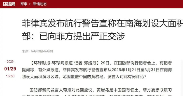事件的导火索是菲律宾在南海部分海域擅自设立了一片“禁飞区”,声称是为了进行军事演练。这片区域不仅涉及广大国际水域,还将中国固有领土黄岩岛全境纳入所谓的禁飞范围。这种毫无依据的行为,不仅是对国际规则的挑战,更是对中国主权的公然侵犯。本质上,这是一场小国通过技术性动作试图引发国际争议的冒险行为,其目的无非是试探中国的底线,同时在国际上制造关于黄岩岛归属的模糊舆论。